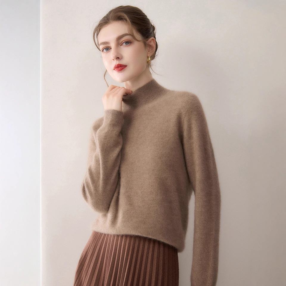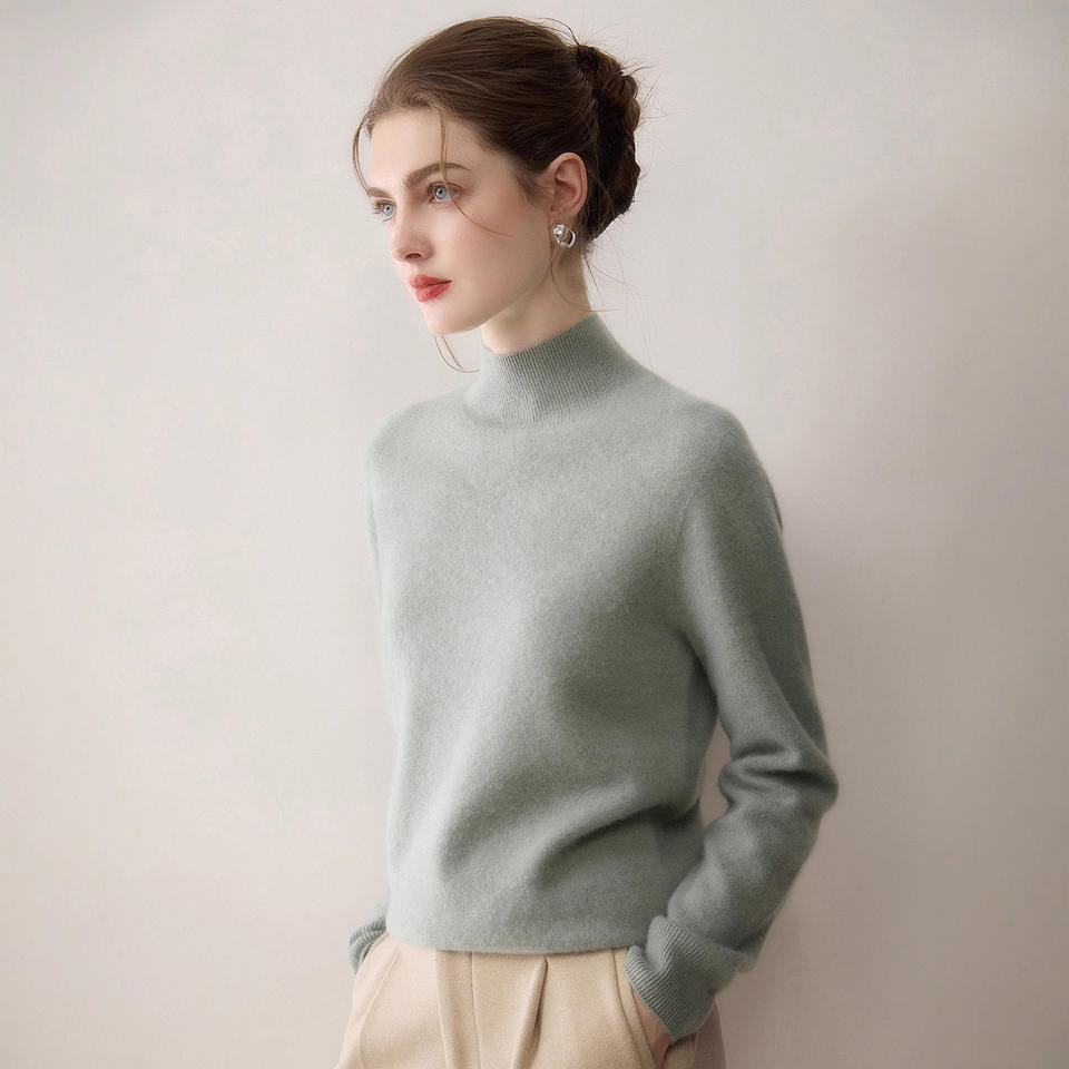 Korean Style Half Turtleneck 100% Pure Cashmere Women's Sweater