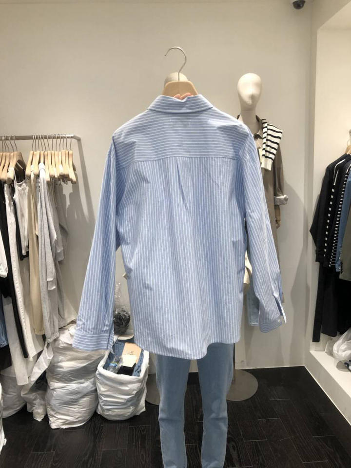 Camicia a righe bianche blu a maniche lunghe stile coreano semplice camicia primaverile oversize da donna