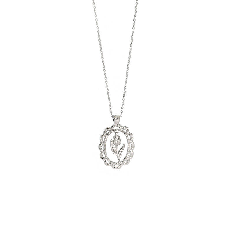Korean Version Niche Oval Brand Hollow Clavicle Temperamental Tulip Pure Silver Gold Plated Freshwater Pearl Wedding Gift
