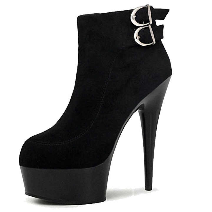 Korean Women's Shoes 15cm Nightclub Super High Heel Low Sexy Pole Dance Short Boots Winter Boots Heels With Plateau