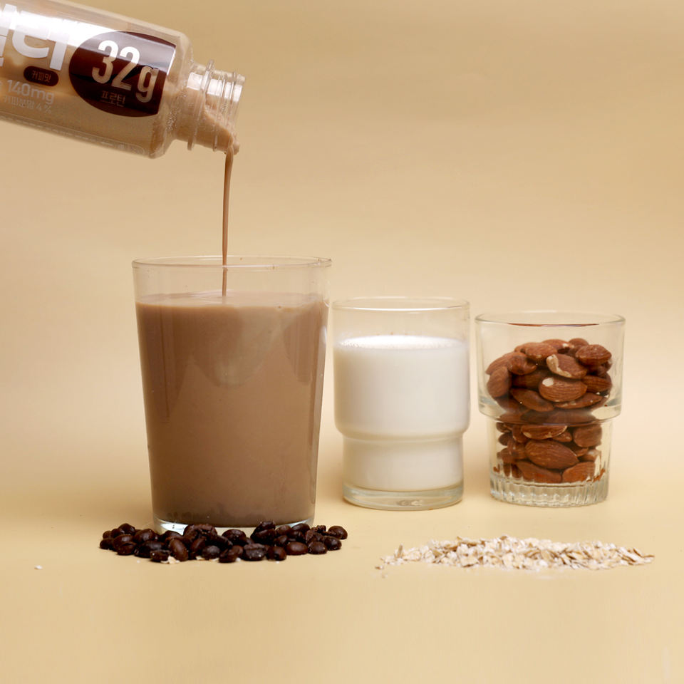 Korean food SYNCOMBINE PROTEINER Coffee Flavor is a simple meal replacement made with oatmeal that provides protein 32g