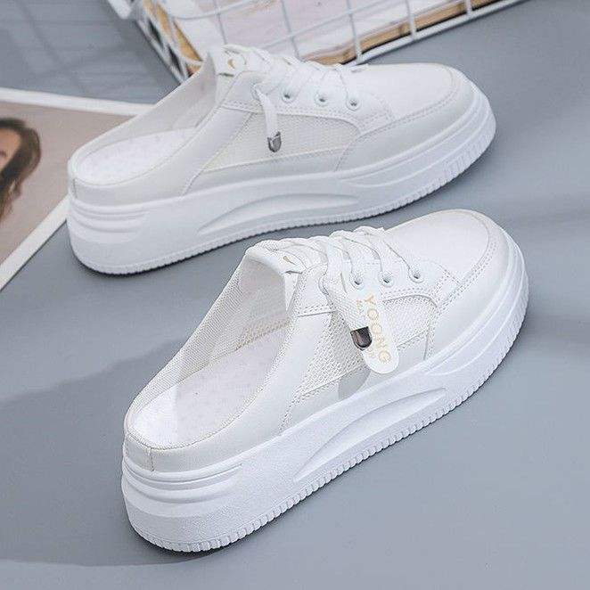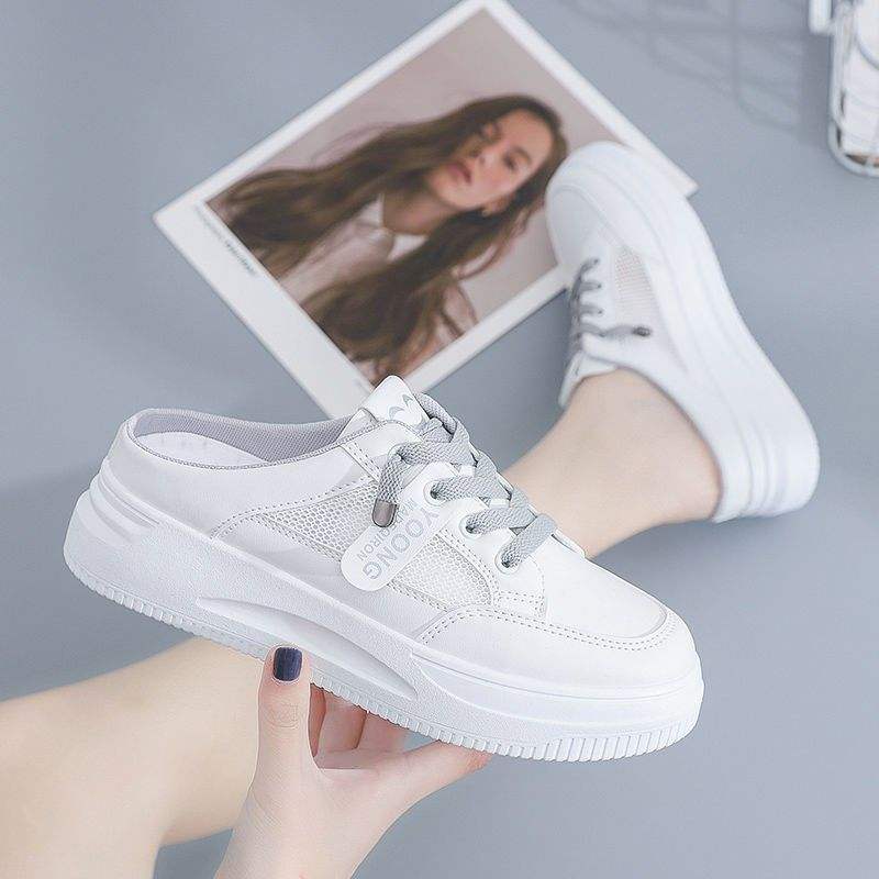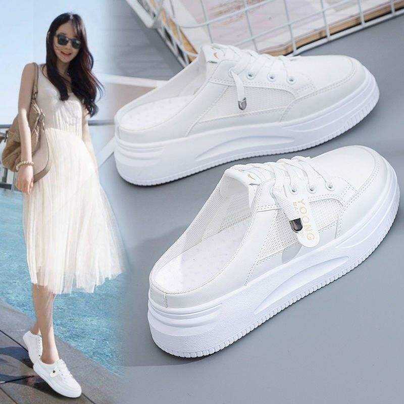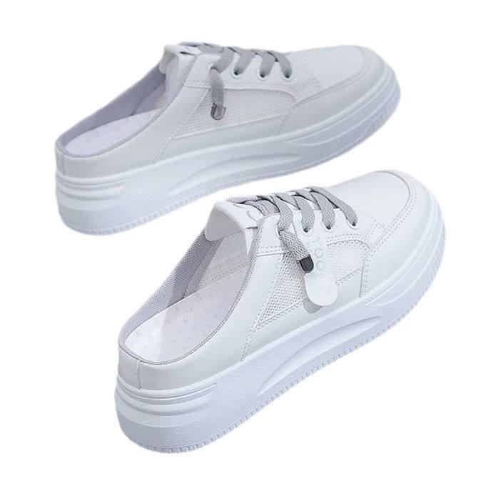 Korean soft leather one piece drop shipping new summer half-support white shoes women's shoes thick soles outdoor lazy sandals w