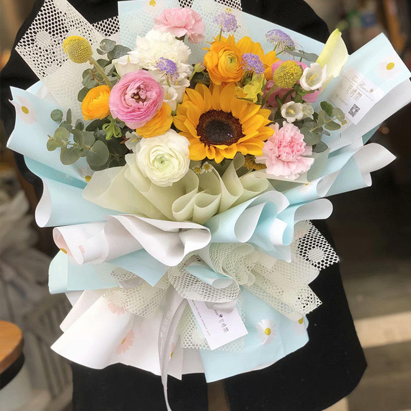 Korean-style Flower Paper Daisies Printed Waterproof Flower Wrapping Paper Single-Sided Coating Paper Florist Material Wholesale
