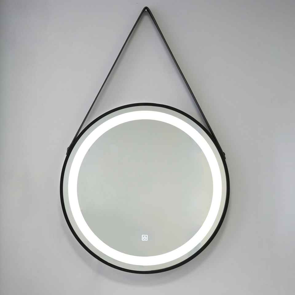 Specchio LED retroilluminato rotondo da 60 cm con cornice nera e cinghia