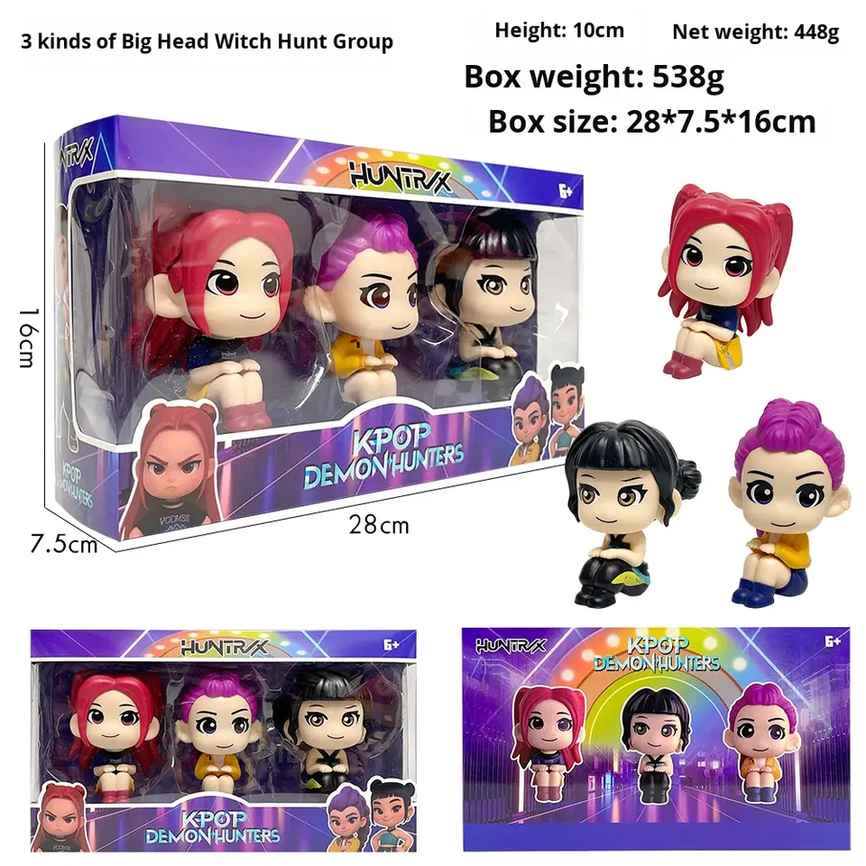 Statuette Kpop Bestseller del Gruppo Femminile Witcher, Figure Sedute a Testa Grande di Lumi, Zoe e Mira.