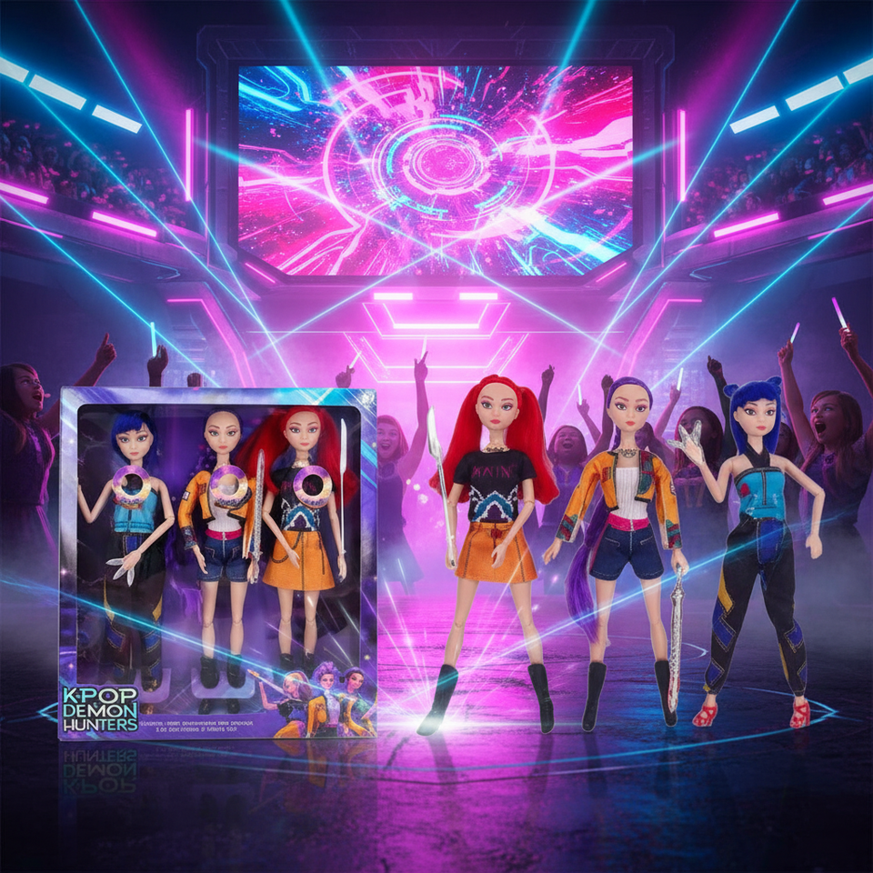 Set di bambole Kpop Demon Hunters in scala 1:6, action figure fantasy per ragazze dagli 8 ai 13 anni con striscia luminosa e funzione musicale