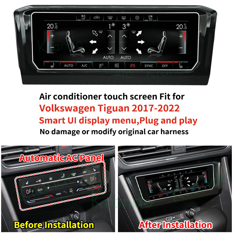 Krando Pannello controllo clima touchscreen LCD full-touch per VW Golf 7/Tiguan/Passat 2013-2022, supporto comandi clima anteriori/posteriori, menu UI Sharp Inglese/Cinese