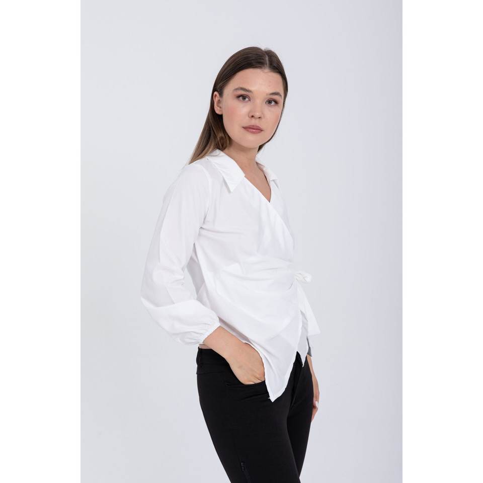 Camicie e camicette da donna Kruvaze Beyaz Kadın Gömlek Yaka Bağlamalı