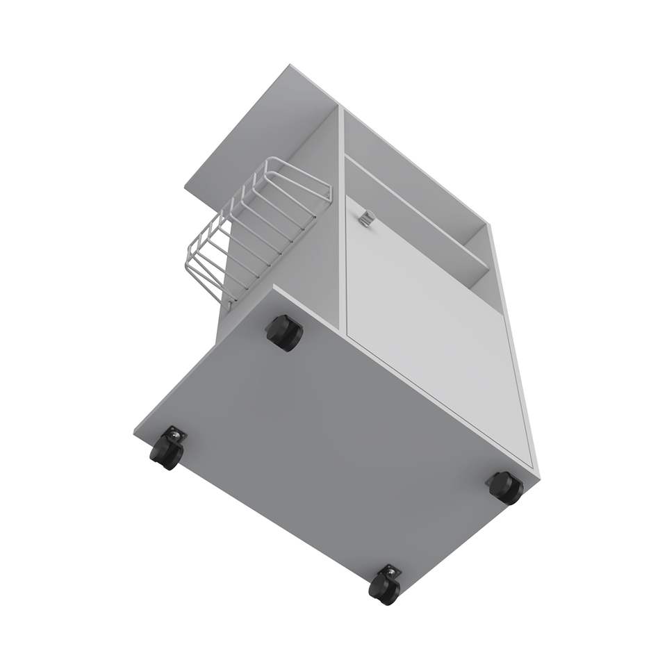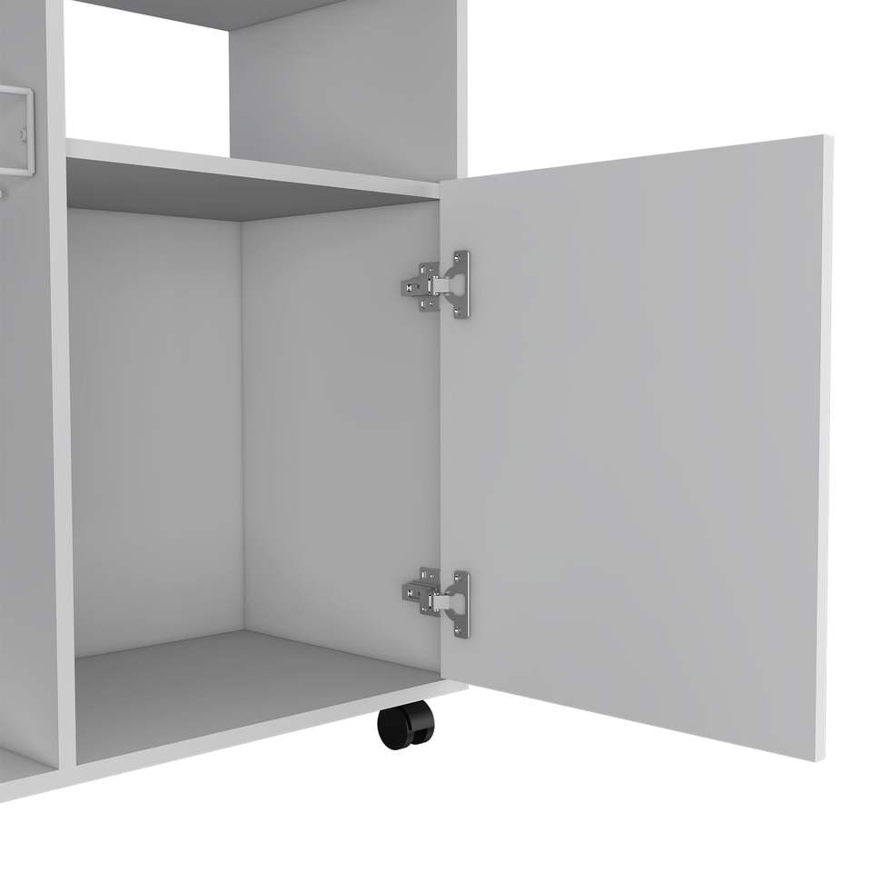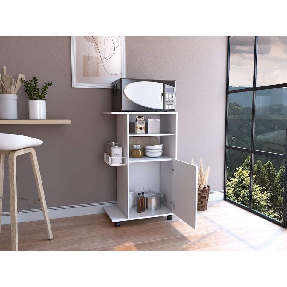 Carrello portaoggetti Kryot con finitura bianca, porta singola e quattro ruote per cucina
