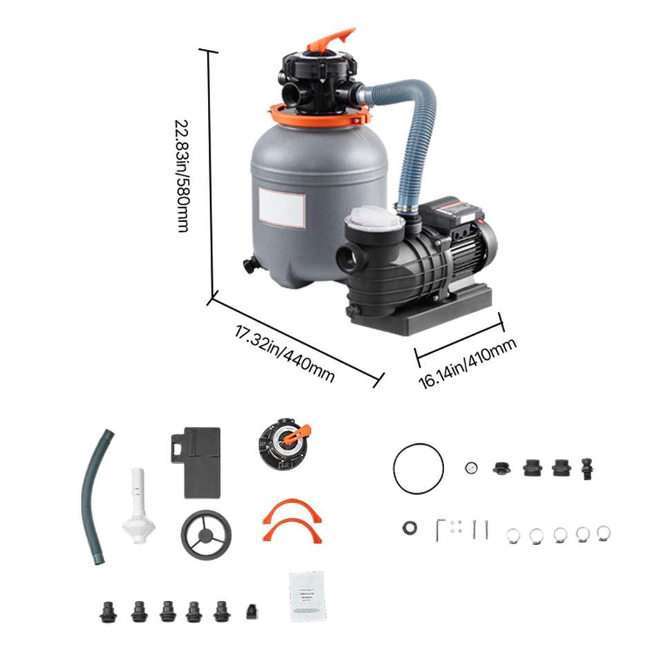 Sistema di Filtrazione a Sabbia per Piscina Krystal Clear a 6 Vie, 1/2 HP, 3000 GPH, 12 Pollici, per Piscine Interrate