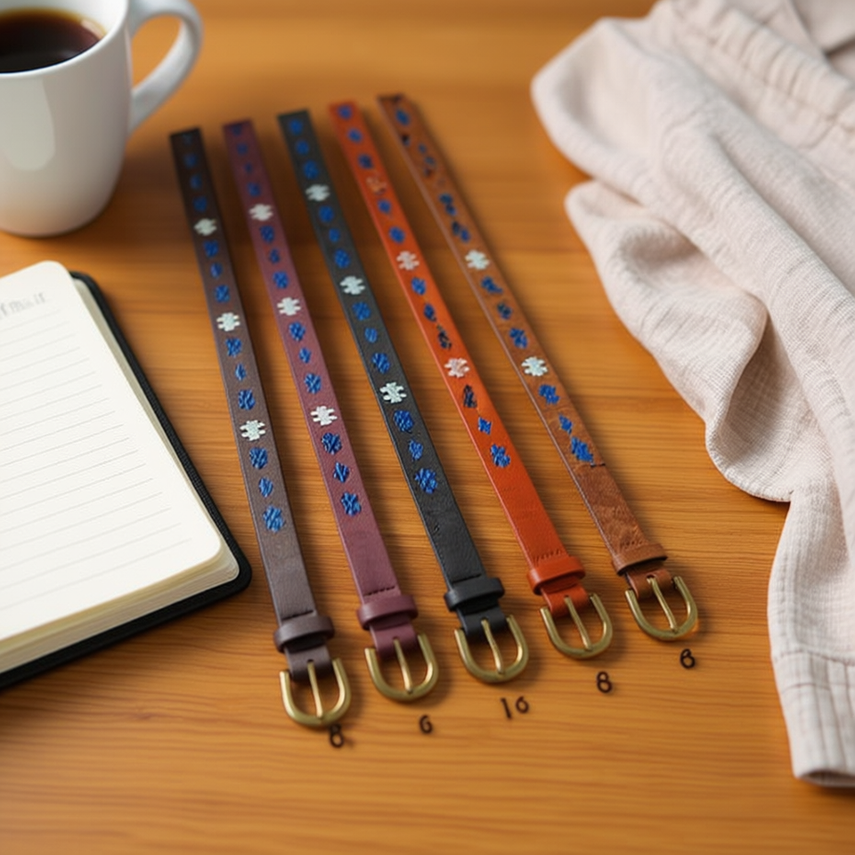 Cintura in PU ricamata con fibbia a mezzaluna Kt, larghezza 2,5 cm, fibbia in rame con anello a D, 6 colori disponibili