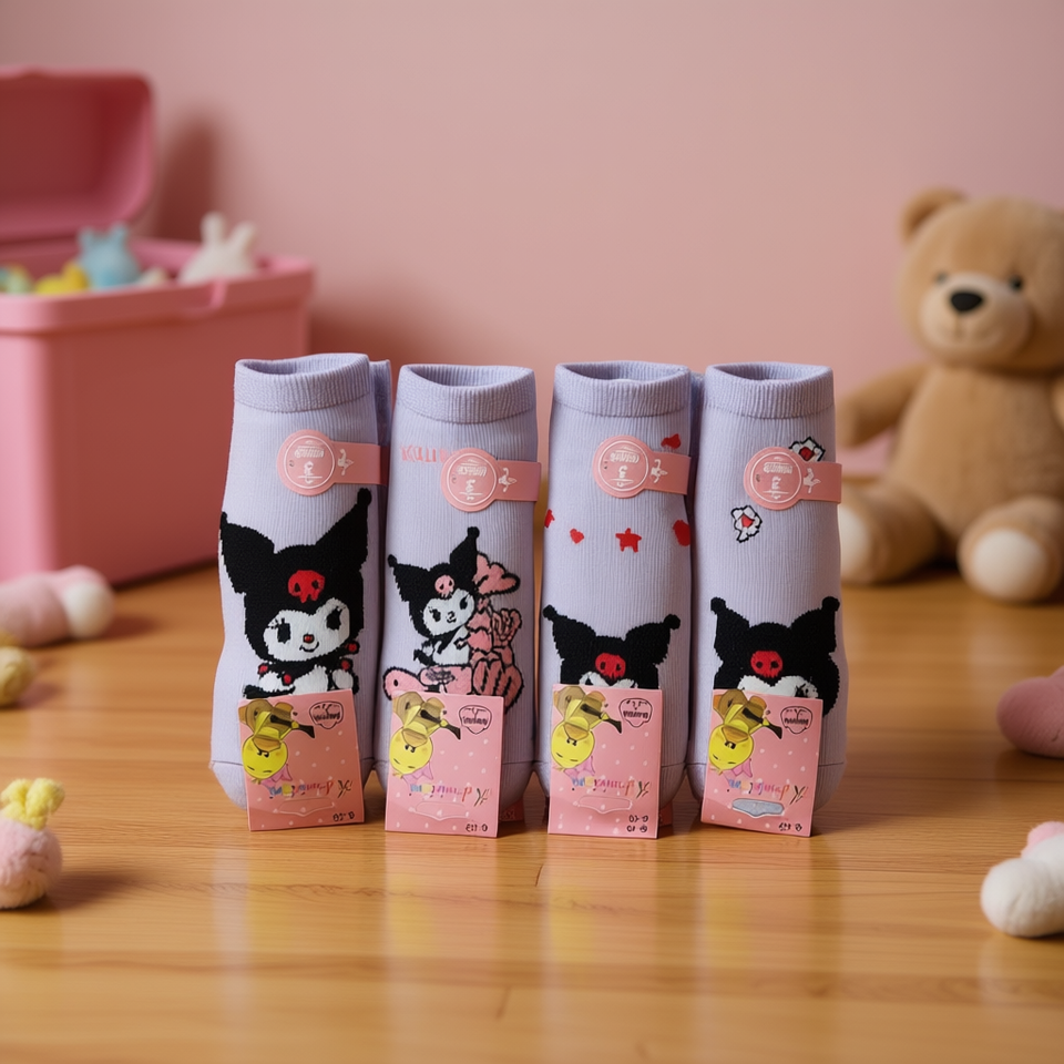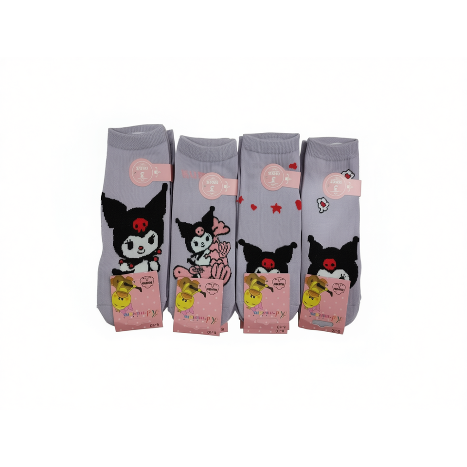Calzini alla caviglia in misto cotone con personaggio Kuromi per ragazze, traspiranti, con stampa digitale, per uso quotidiano, stile primaverile