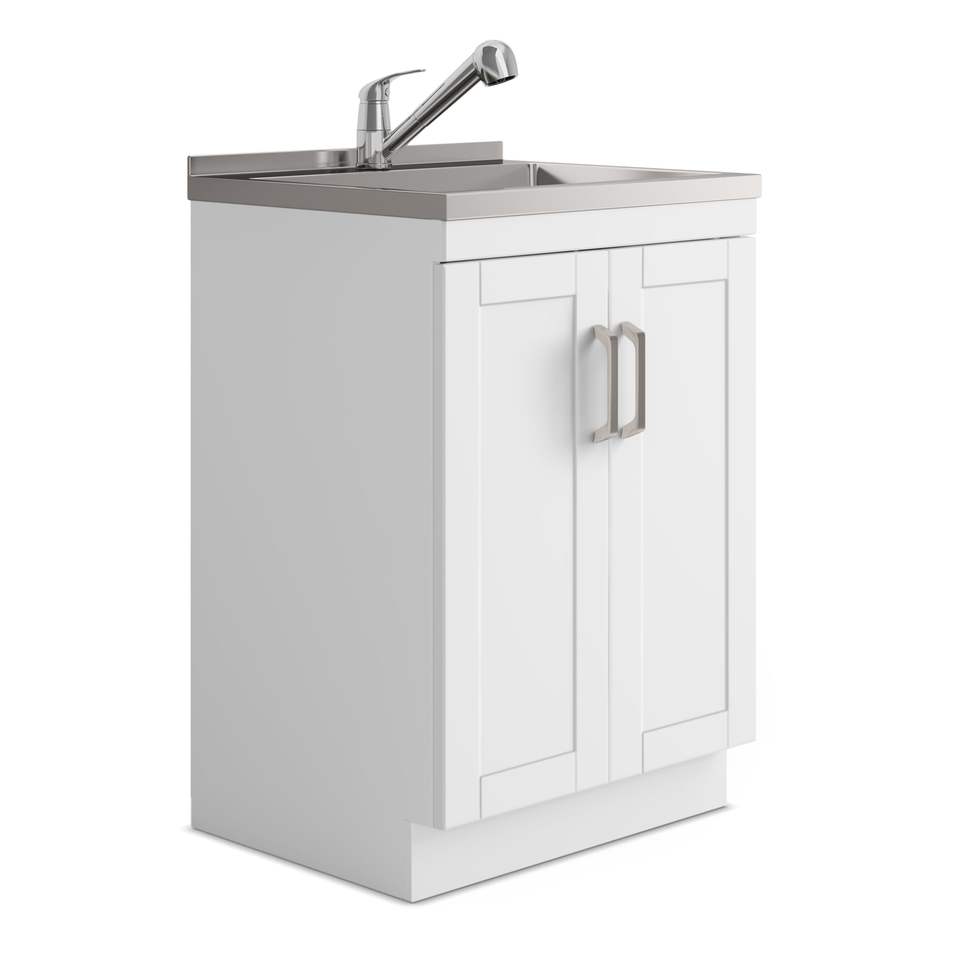 Mobile Lavanderia Kyle da 24 Pollici Bianco con Rubinetto e Lavello in Acciaio Inox, Elettrodomestico Premium