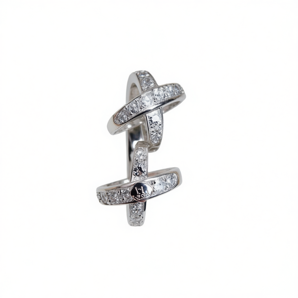 Anello Cocktail L-1 Nesia Cross in Acciaio Inossidabile Placcato Rodio con Micro Pavé di Diamanti, Anello Unisex Moderno per Matrimonio e Moda