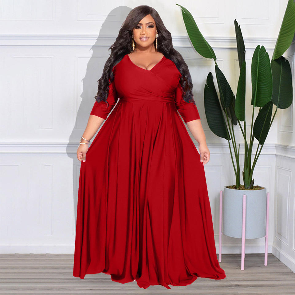 L-4XL Abiti da donna taglie grandi Abbigliamento da donna Abito lungo da matrimonio e da sera con scollo a V Abiti casual oversize per estate e primavera