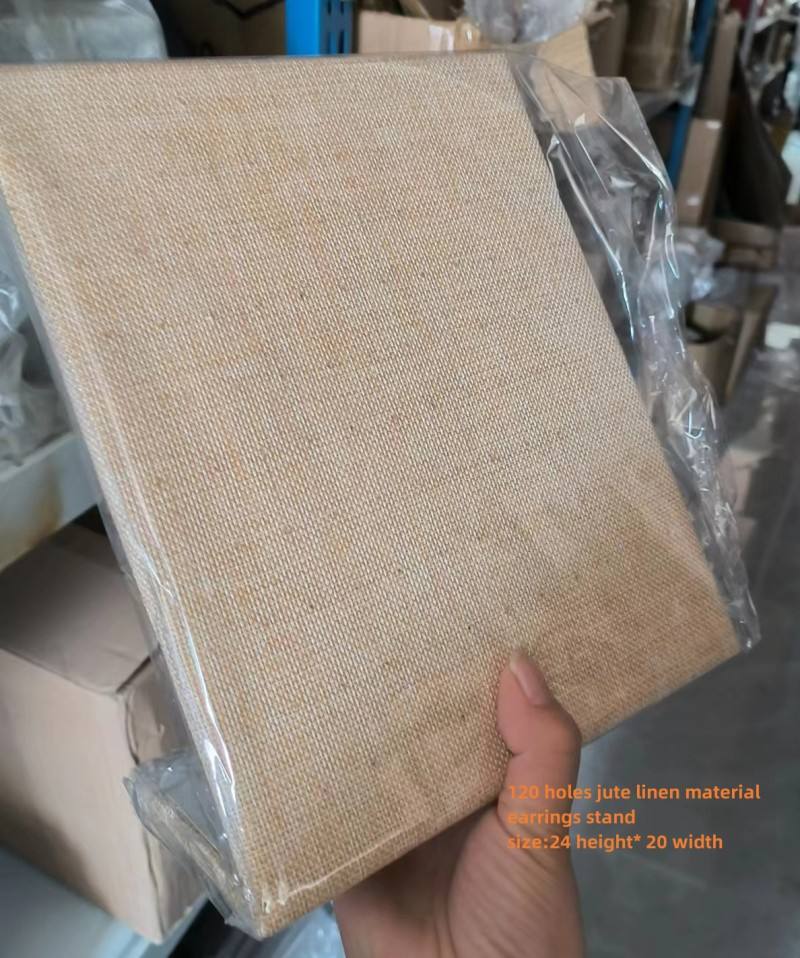 Espositore per Gioielli a Forma di L, 60 Scomparti, in Velluto e Juta, per Orecchini
