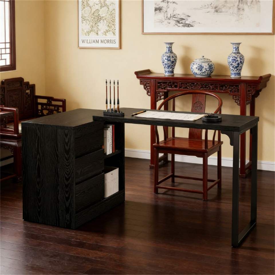 Scrivania angolare a L con contenitore per spazi ridotti, scrivania per computer