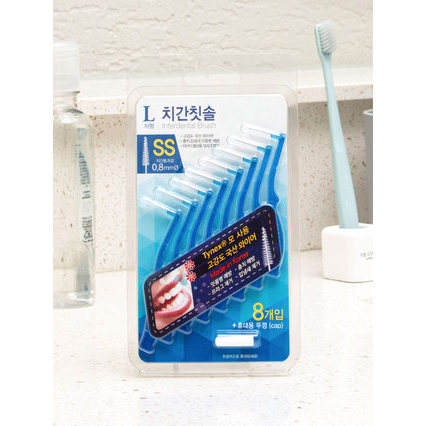 L-Shaped Interdental Brush with Stainless Steel Wire 8P Feature for Effective Cleaning