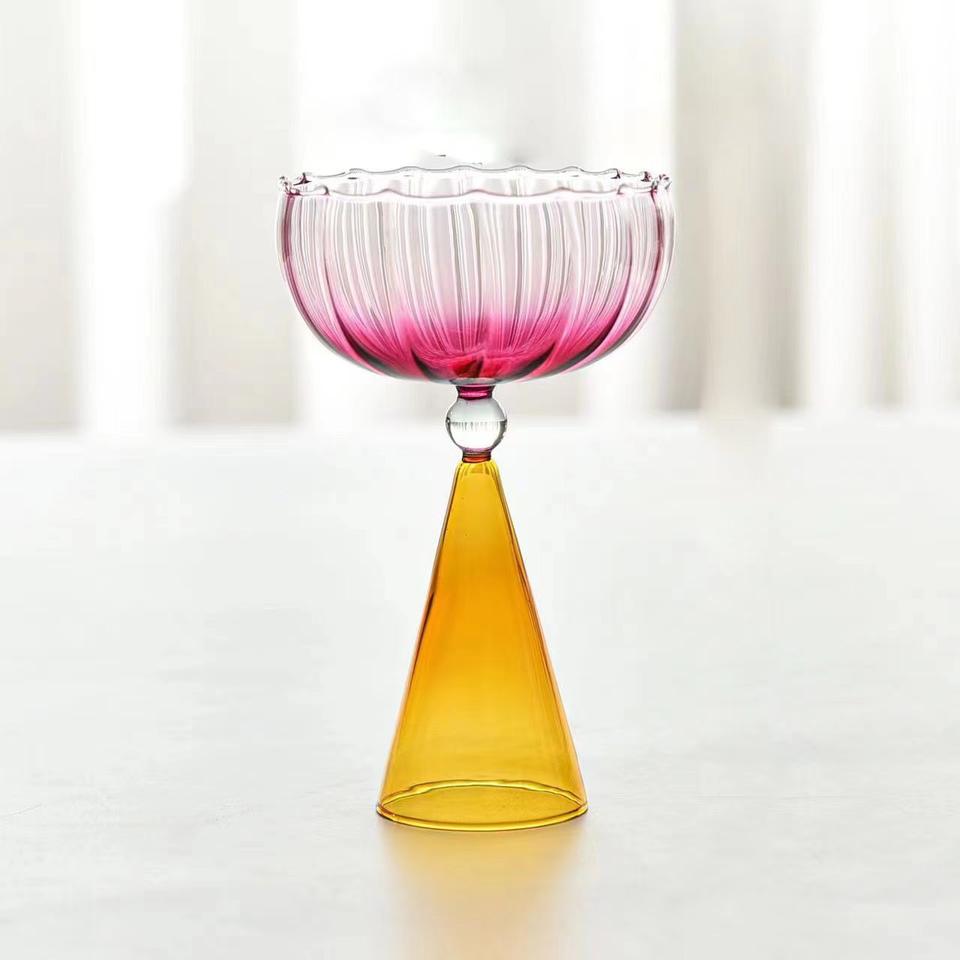 L Design unico all'ingrosso alta borosilicato a strisce di vetro di vino calice di caffè tazza di vetro soffiato a mano