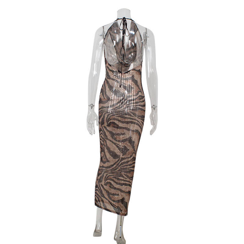 L0868-wholesale Elegant Leopard Sequin Drape v Neck Slim Fit Maxi Dress for Women Party Evening Dress