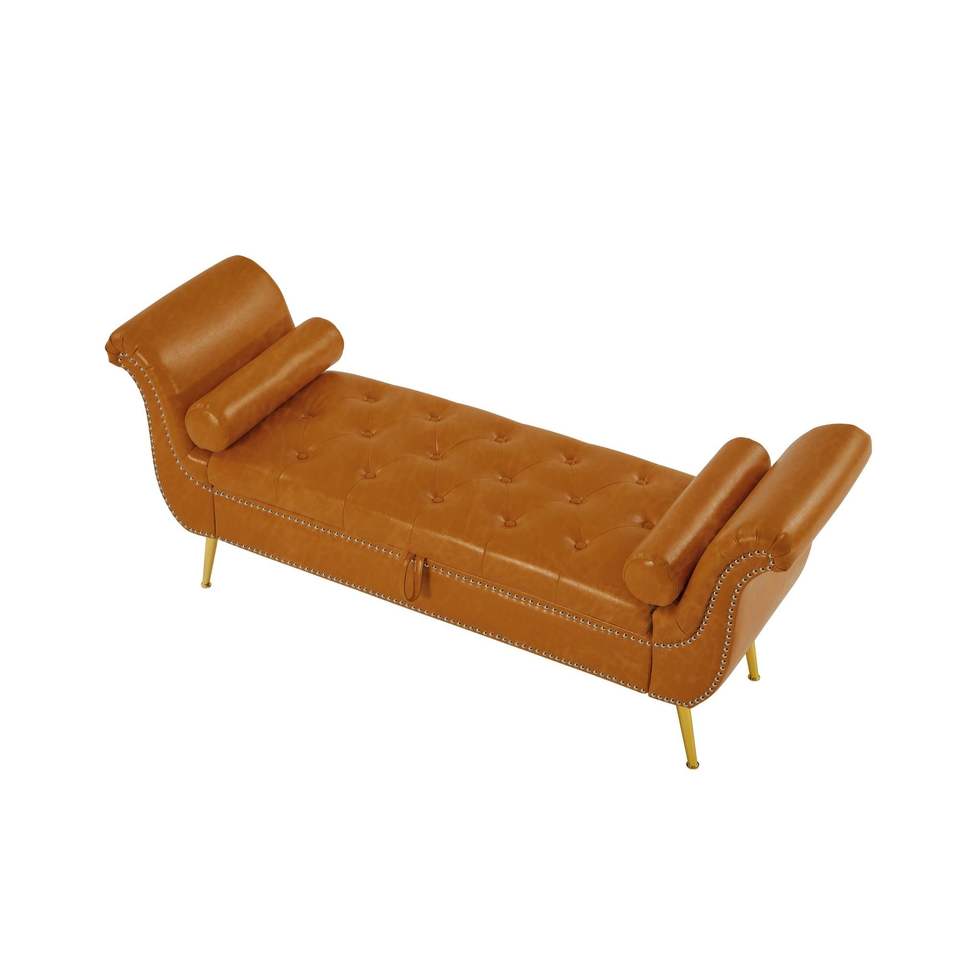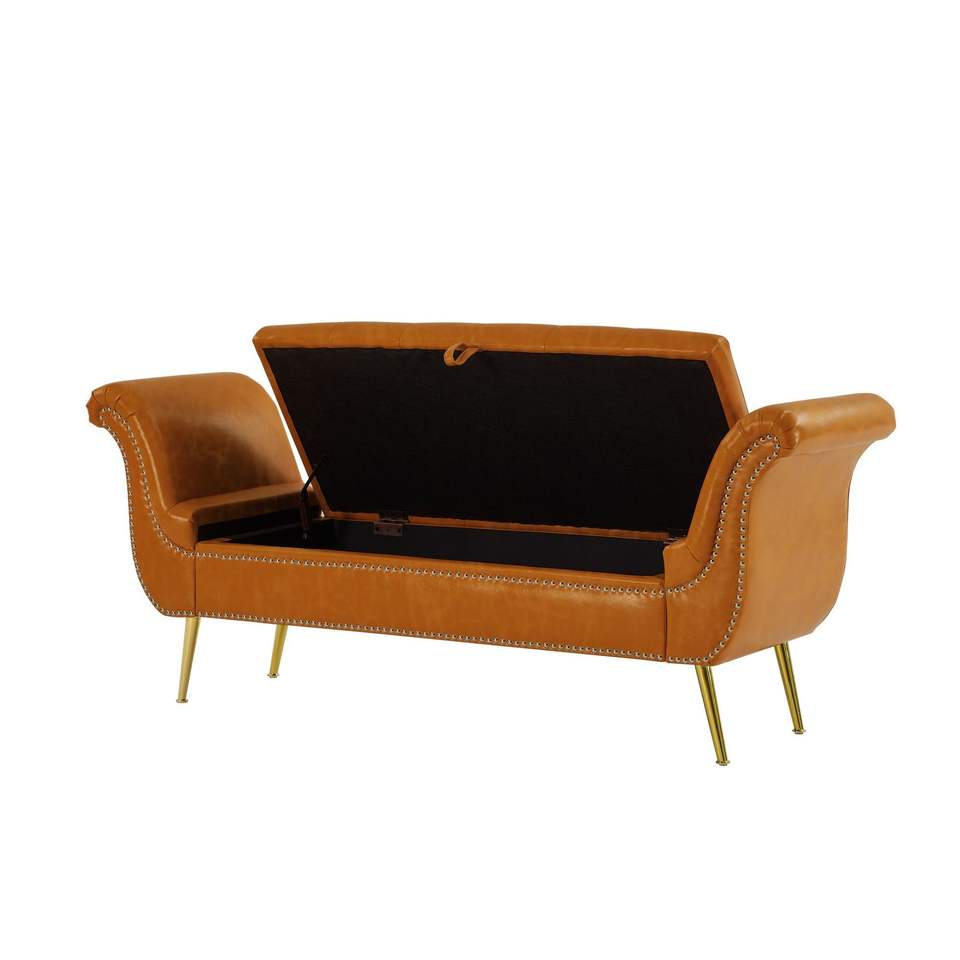 Sgabello in Pelle PU L8118 Giallo-Marrone, Eleganti Pouf e Sgabelli, Categoria Prodotti Arredo Casa