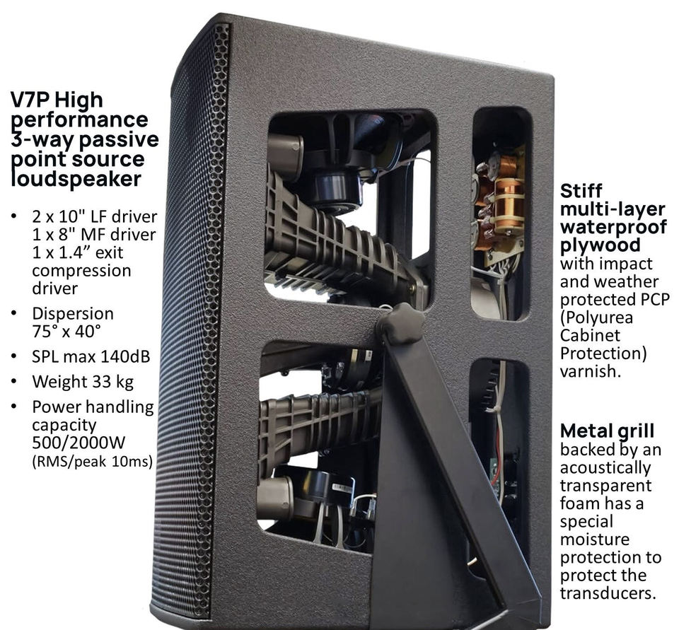 Altoparlante Attivo LA-V7P Point Source ad Alte Prestazioni, Diffusore Point Source Passivo a 3 Vie