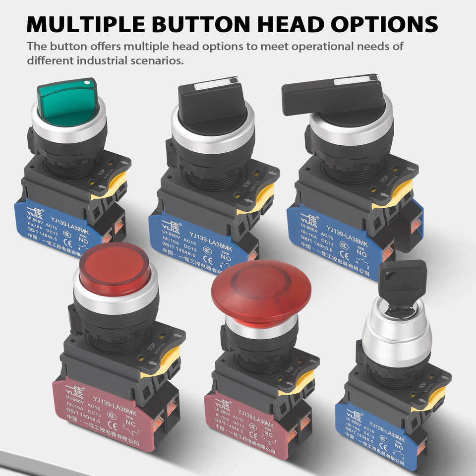 LA38MK-XB 22MM Selector Switch 2 Position 3 Position Select button Black Red Green Handle Quick Plug Wiring Machinery