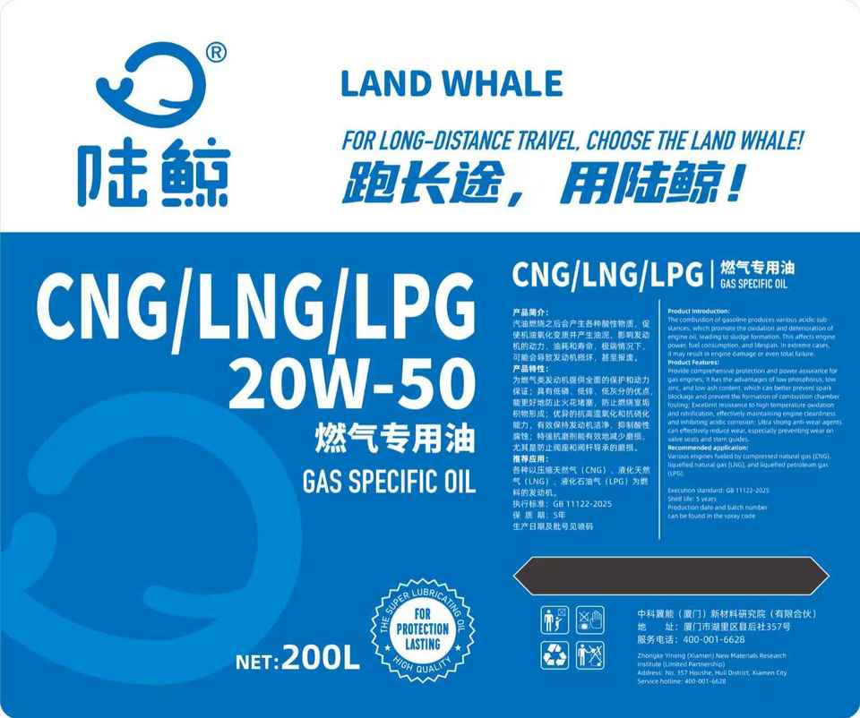 Olio Motore Completamente Sintetico Land Whale 10W-40 18L API G6 per LNG CNG LPG, Olio Lubrificante e Olio Motore per Auto e Olio per Ingranaggi, Durata 5 Anni