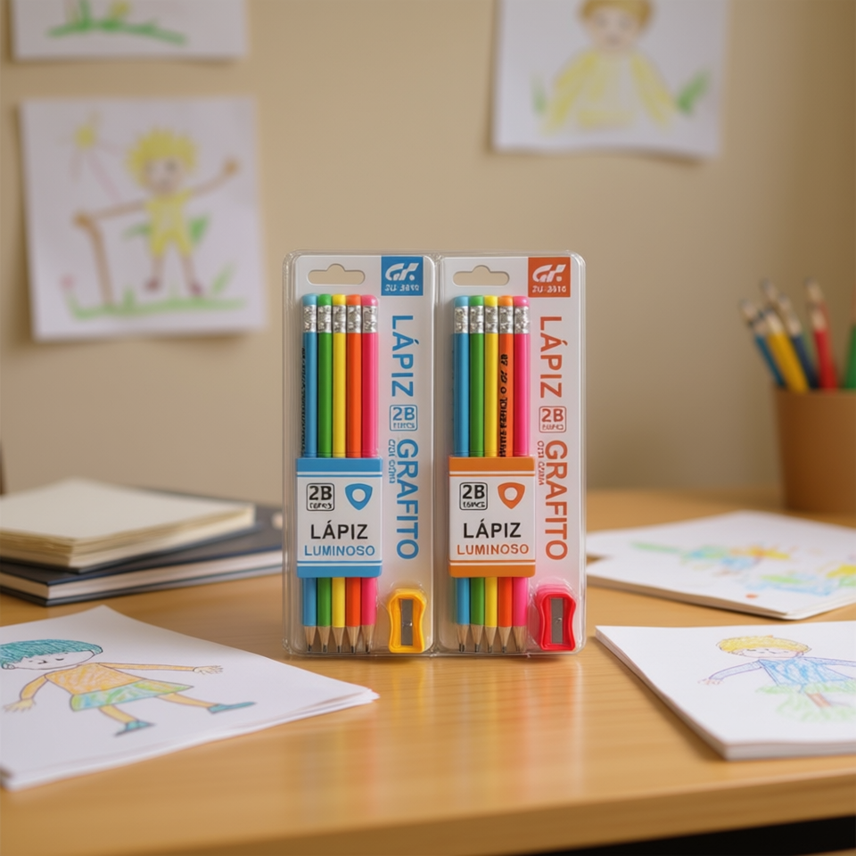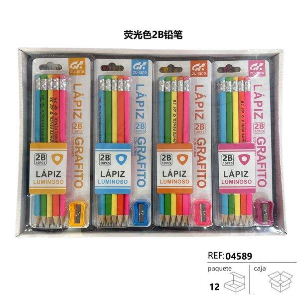 Set di 10 Matite Colorate Fluorescenti LAPIZ 2B con 12 Pezzi per Confezione
