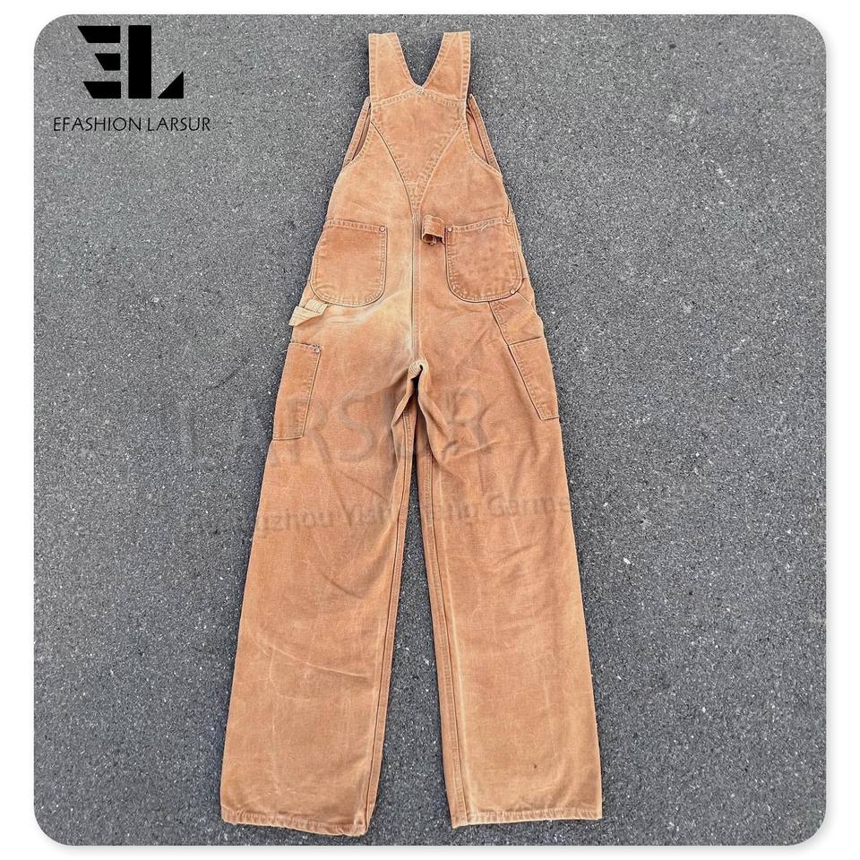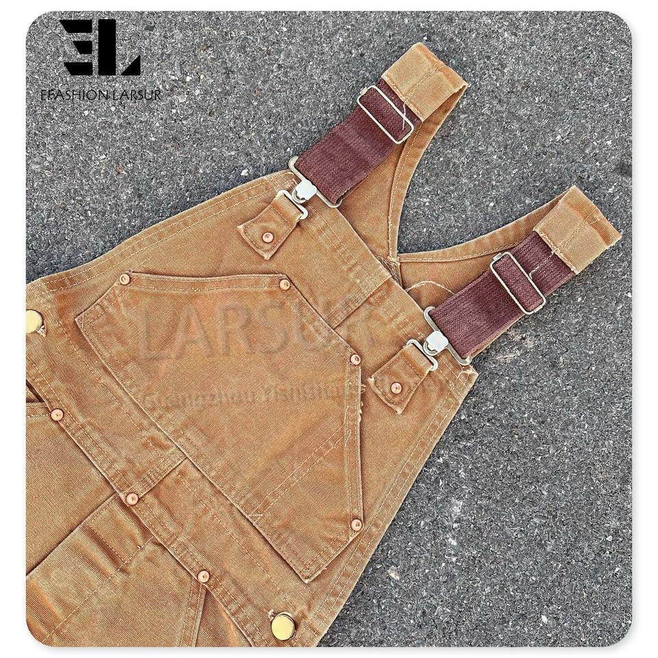 Tuta da Lavoro LARSUR Personalizzata in Tela di Cotone Trapuntata Effetto Vissuto per Uomo, Stile Carpentiere, Cargo, Denim, Tuta da Lavoro in Tela