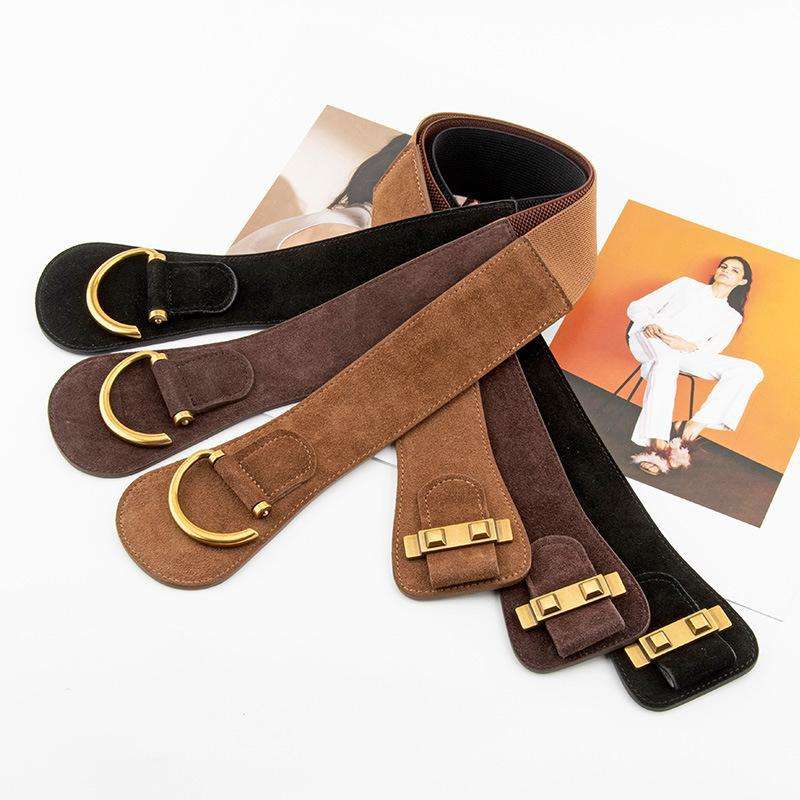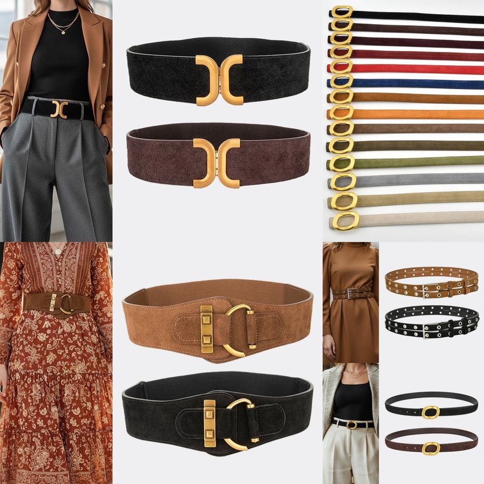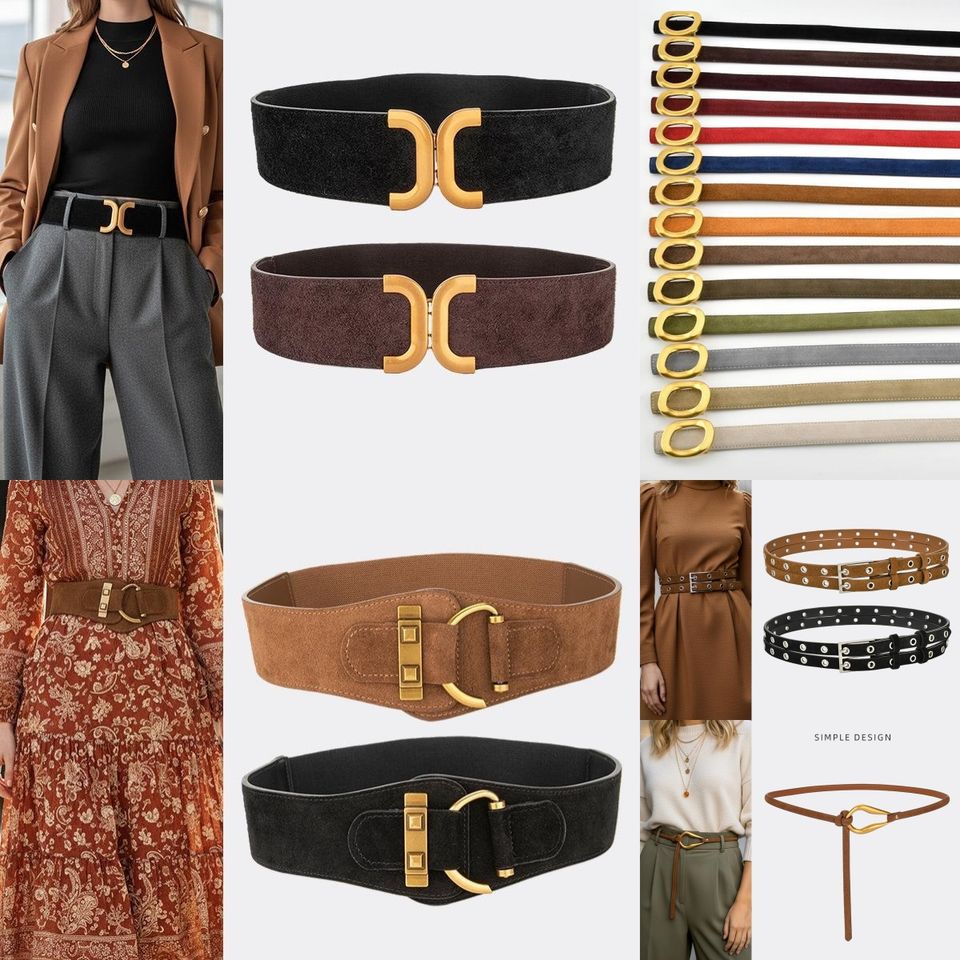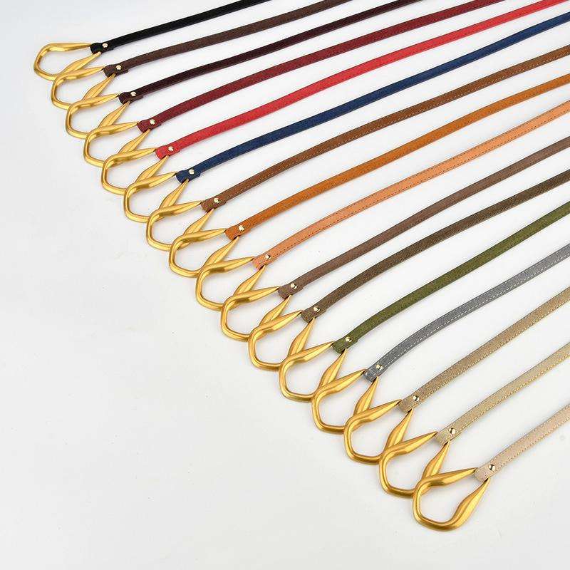 LB113 2026 Nuova Collezione Cintura Classica Sottile in Pelle di Vacchetta per Donne, Elegante Fibbia Dorata, Cintura in Pelle per Ufficio e Abiti Formali