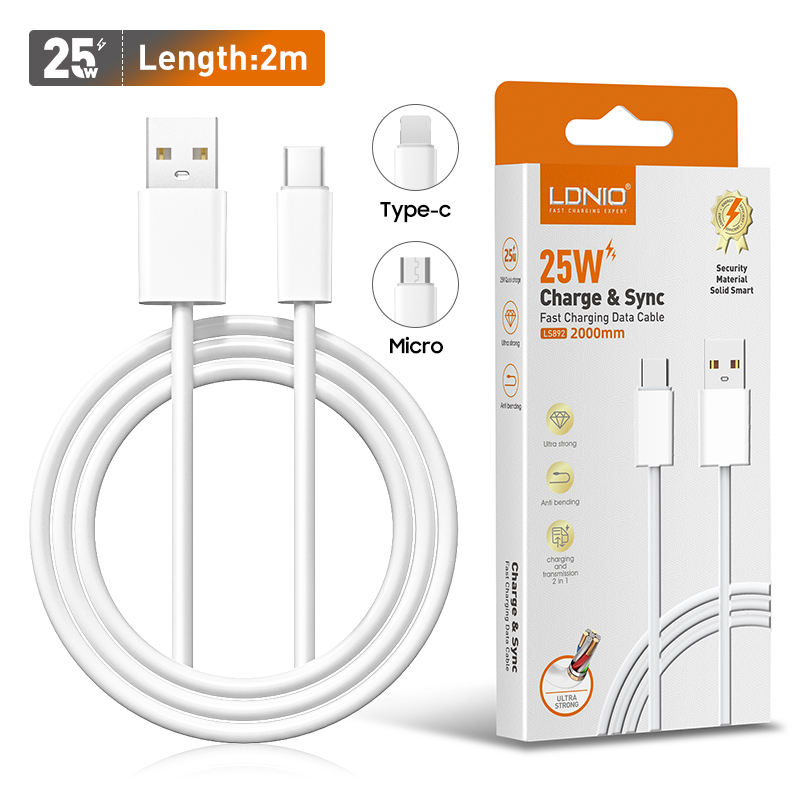 Cavo USB Multi-Caricatore LDNIO LS891 da 25W in PVC a Ricarica Rapida con Connettori Lightning, Type-C e Micro-USB per Telefoni Cellulari