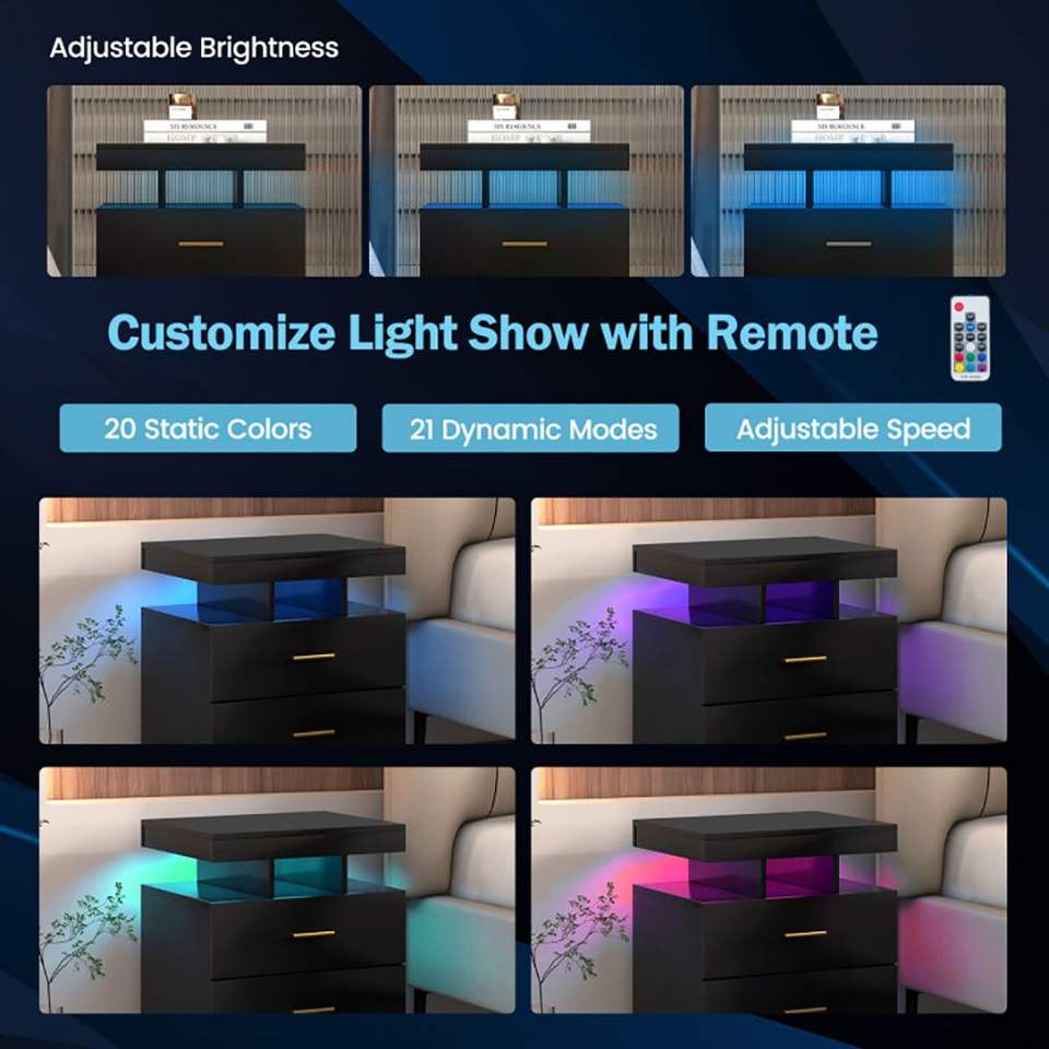 Comodino LED con 2 Cassetti Portaoggetti per Camera da Letto e Ufficio