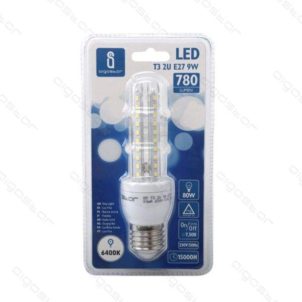 Lampadina LED T3 2U 9W E27 6400K Bianco Freddo 780Lm 15000H Durata Luce a Risparmio Energetico