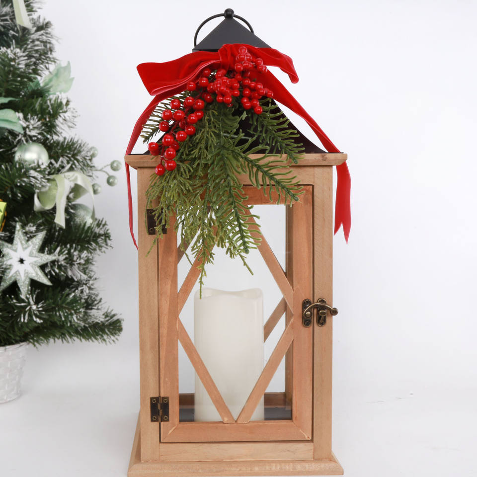 LED Christmas Tabletop Lantern Ornaments Wood Candle Holders & Candle Jars Light Gifts for the Holiday Season