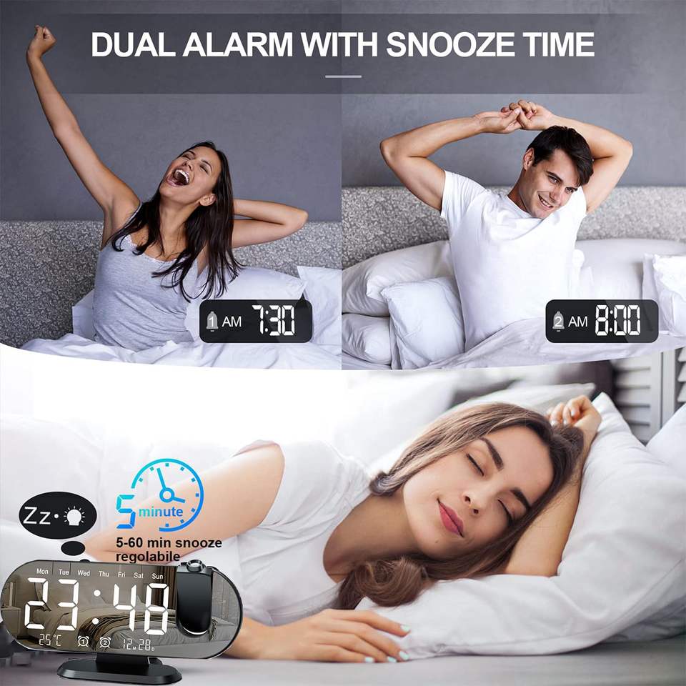 LED digitale sveglia sveglia da tavolo sveglia elettronica con proiezione Radio proiettore orario camera da letto orologio da comodino