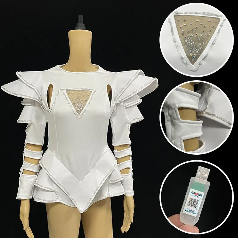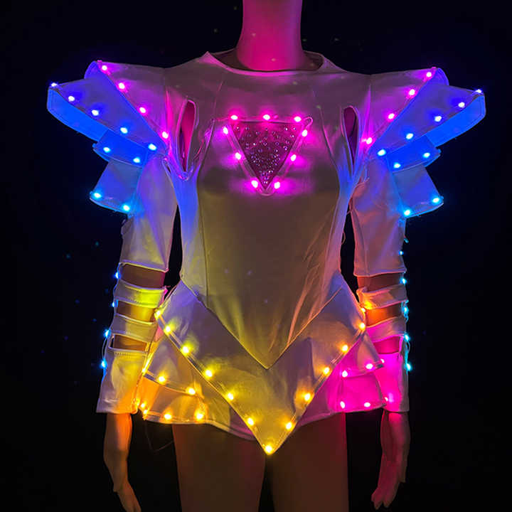 Costume da Ballerina Guerriera Femminile LED, Tuta Luminosa Colorata, Accessori per Feste Disco per Donne/Ragazze