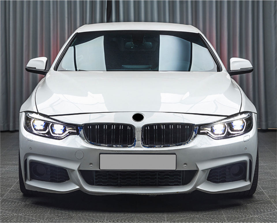 Gruppo Fari a LED per BMW Serie 4 F32 2013-2020, Stile M4 con Anello Blu, DRL Bicolore, Proiettore Plug and Play