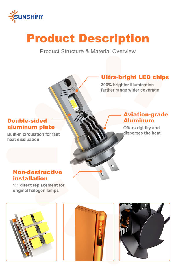 Lampadina Faro a LED H7 Alta Potenza 70W Canbus Plug and Play Ventola Silenziosa 6500K 10000LM Certificata CE per Auto e Moto | Sunshiny Sz2