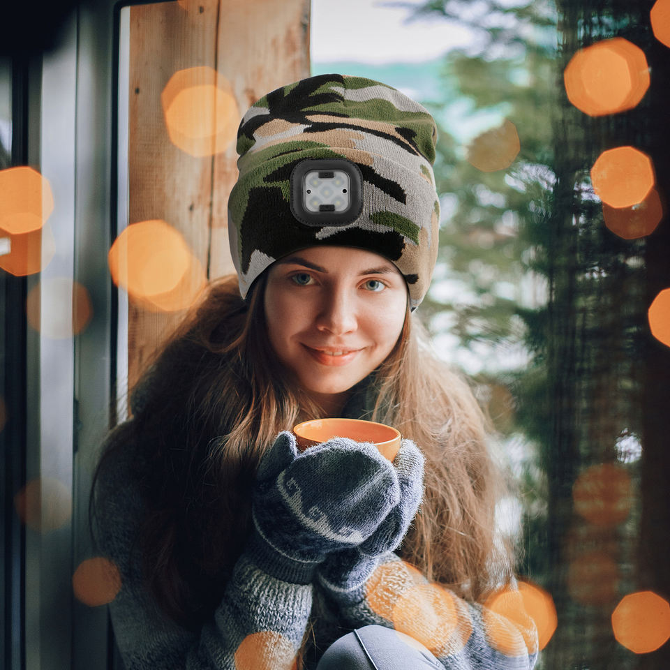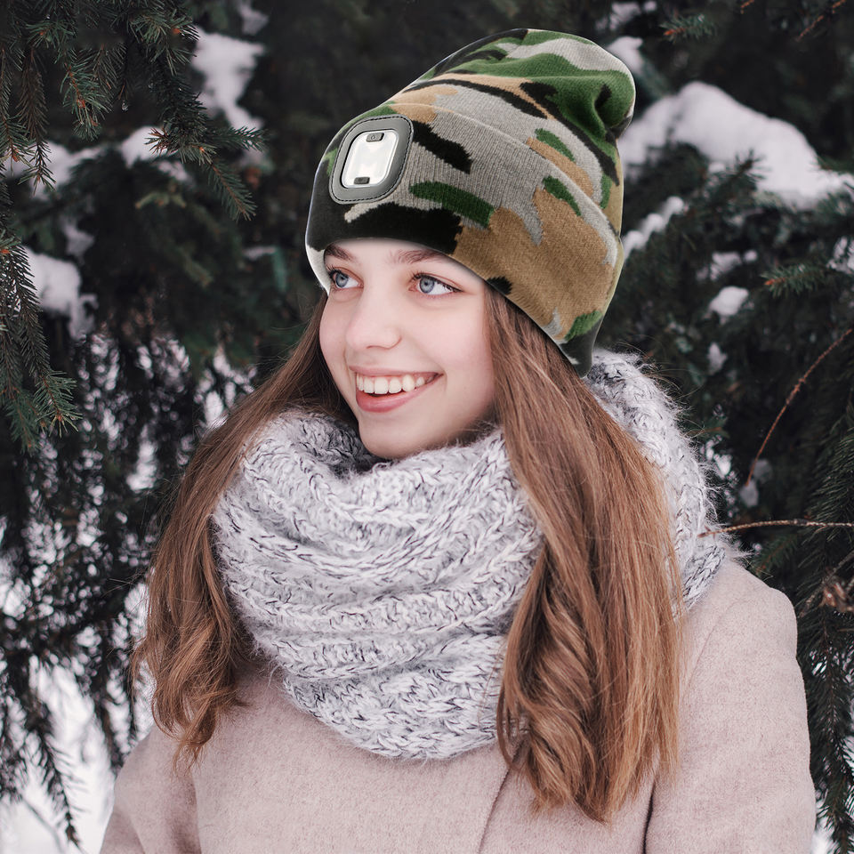 LED luce cappello USB ricarica rimovibile e lavabile lampada tappo esterno tenere caldo faro cappello con luce