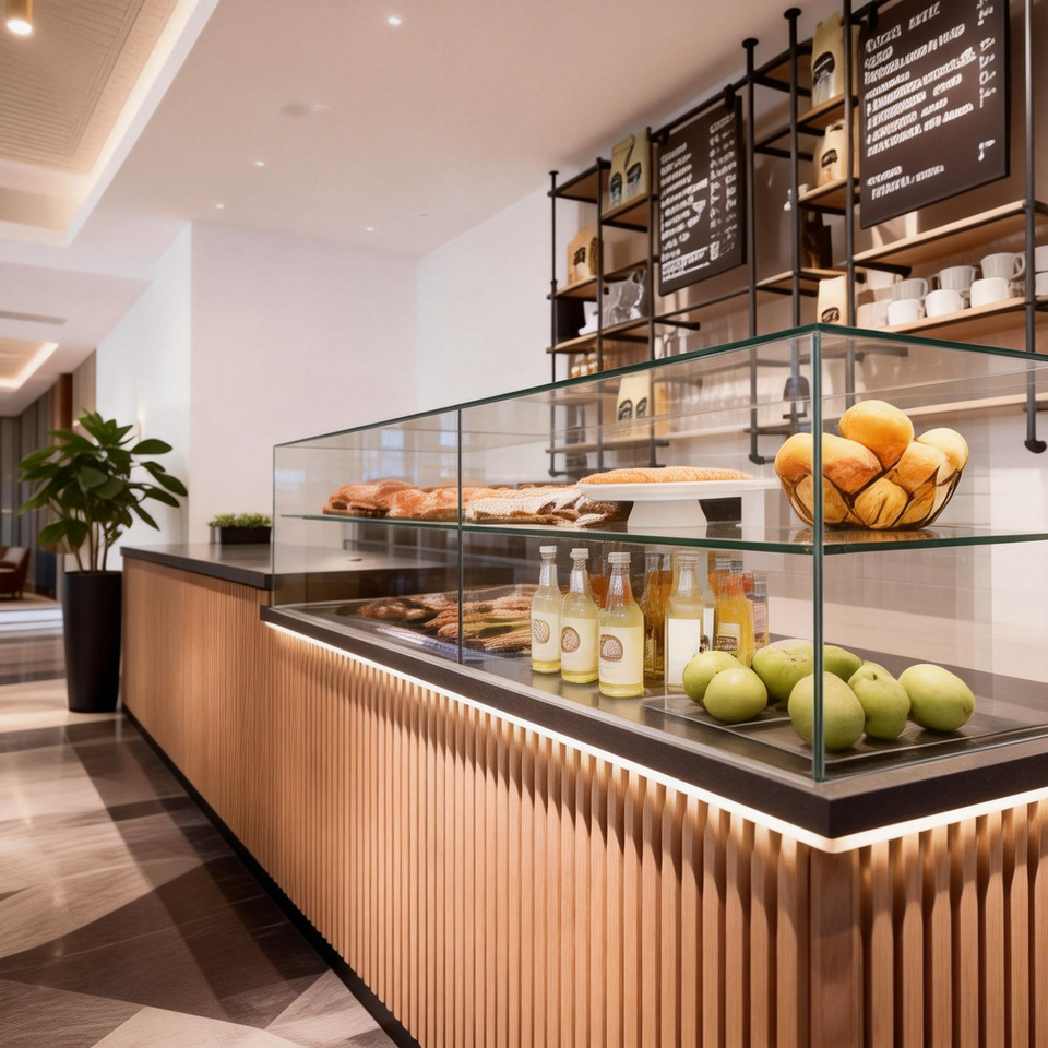 Vetrina Espositiva in Legno con Illuminazione LED, Bancone Personalizzabile per Caffetteria, Negozio di Dolci e Pasticceria
