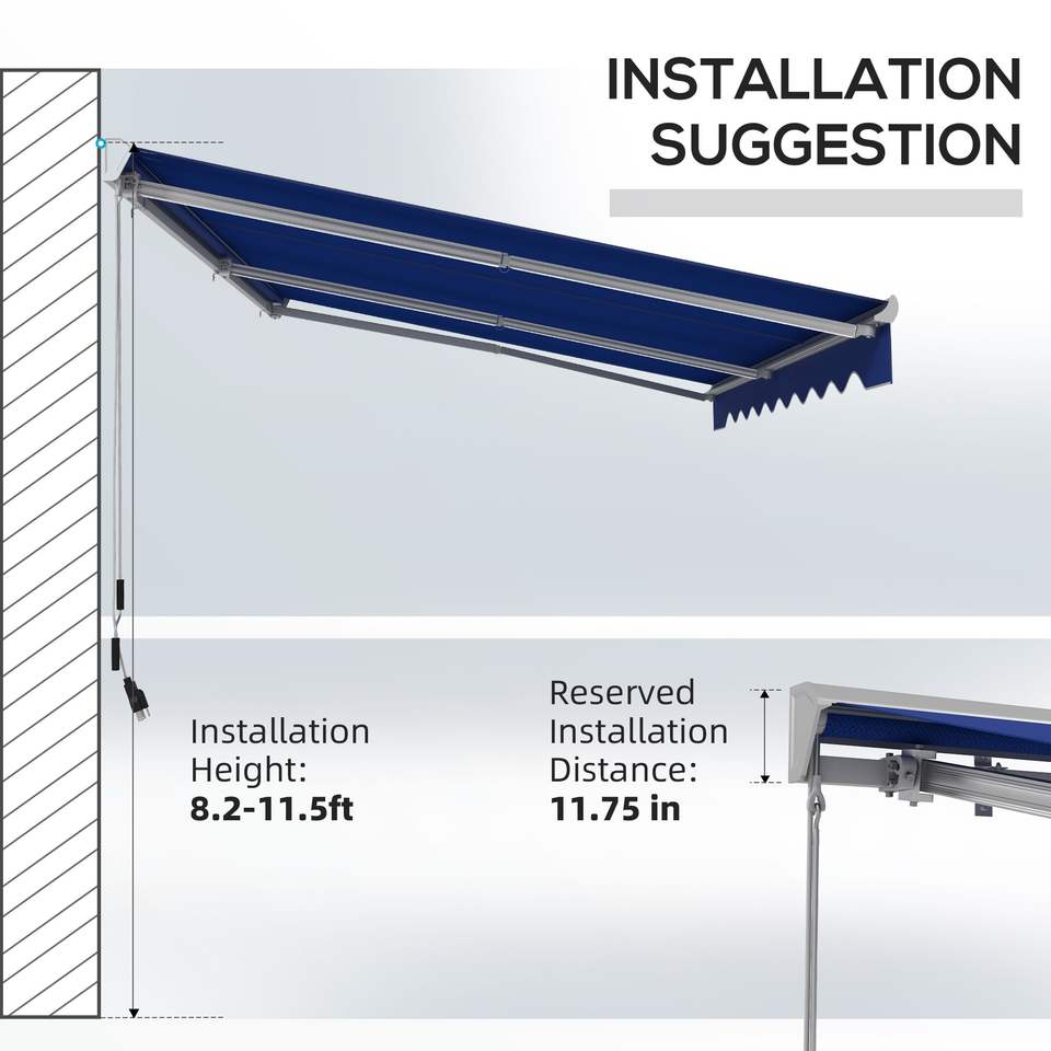 Tenda da Sole Elettrica Retrattile Blu 16,5 X 10 con Luci LED e Telecomando per Porte e Finestre