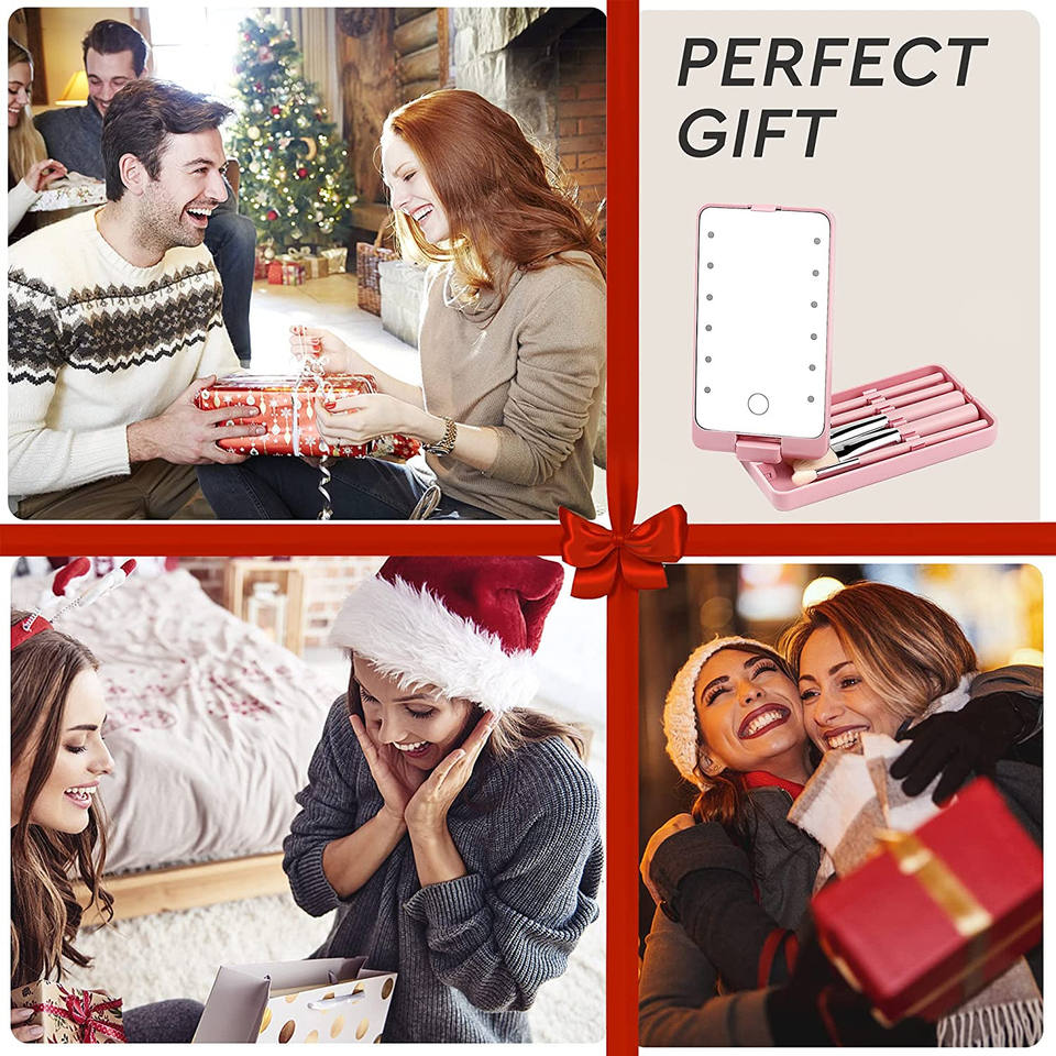 Specchio da 5 pollici rotondo doppio lato per il trucco a LED 5X ingrandimento pieghevole a forma di rosa specchio Desktop con Logo personalizzabile 1 pz