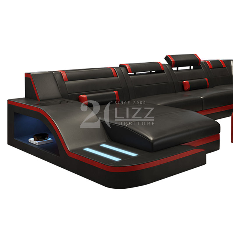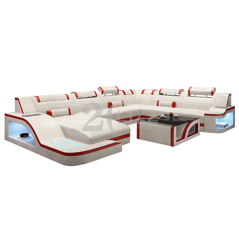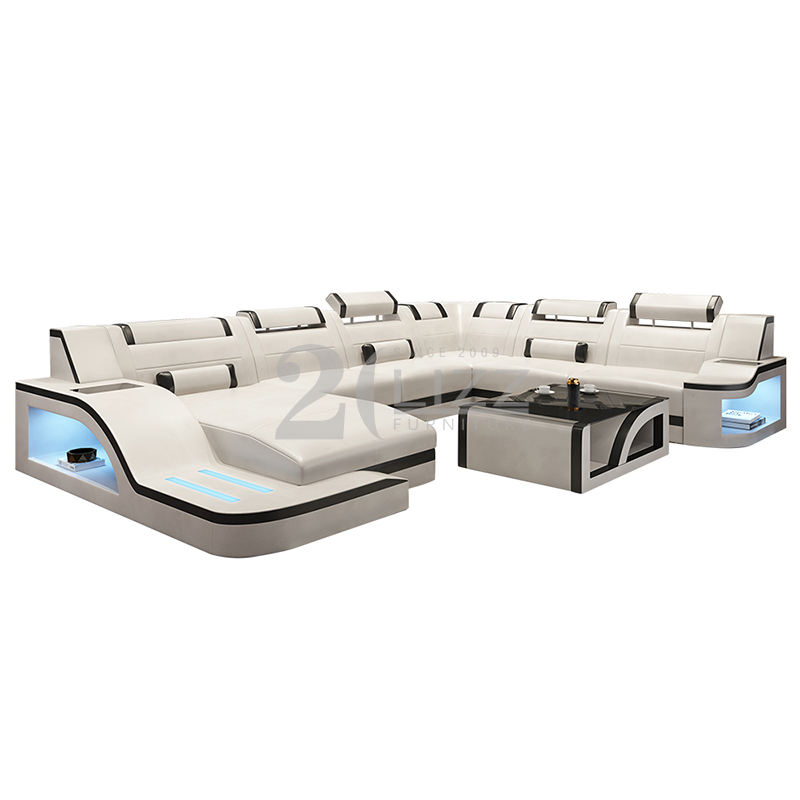 Set di mobili per divani a forma di U di lusso moderno a LED con USB e funzione Led per mobili da soggiorno