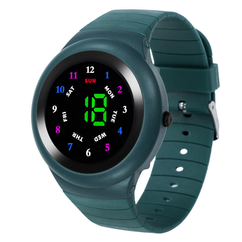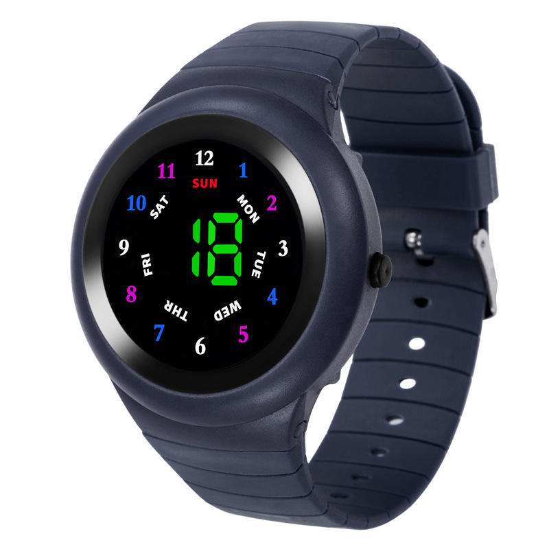 LED New Watch for Children Button Glass Mirror Round Male and Female Students With Week Display Fashion Electronic Watches
