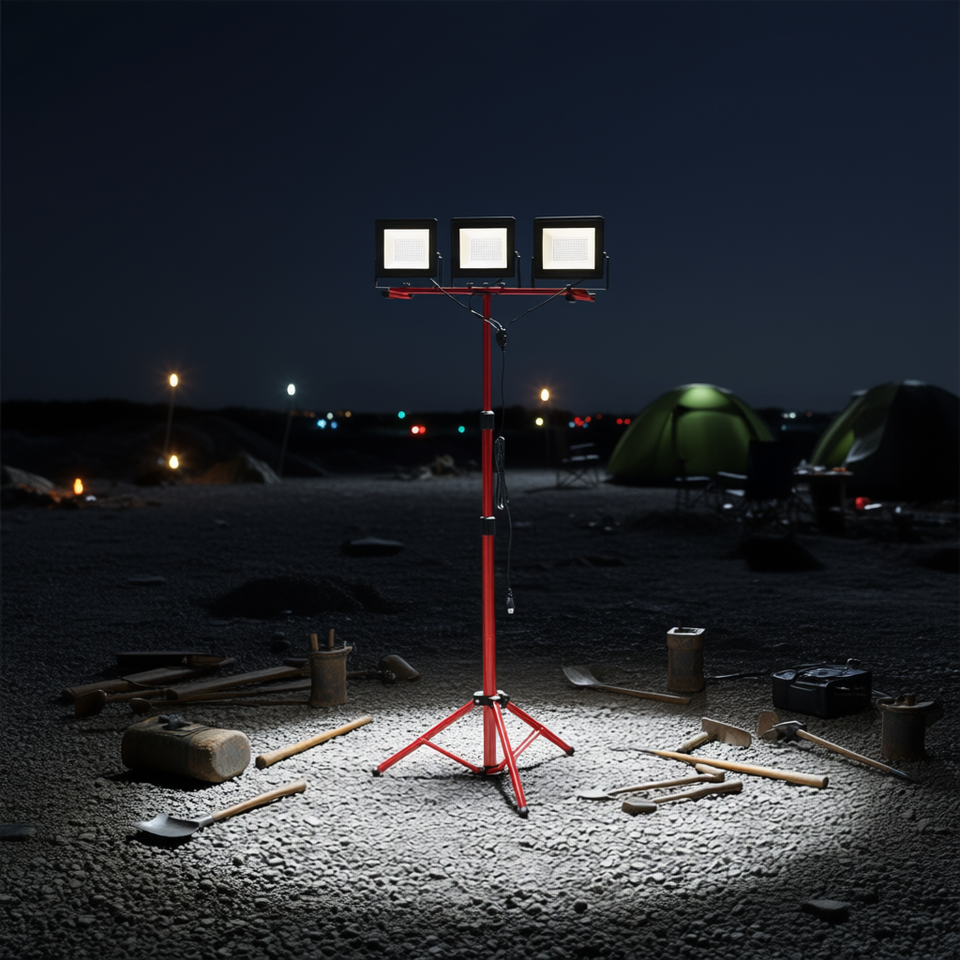 Lampada da Campeggio LED Portatile con Supporto, 21000 Lumen, 3 Teste, IP65 Impermeabile, Treppiede Rosso per Uso Interno ed Esterno