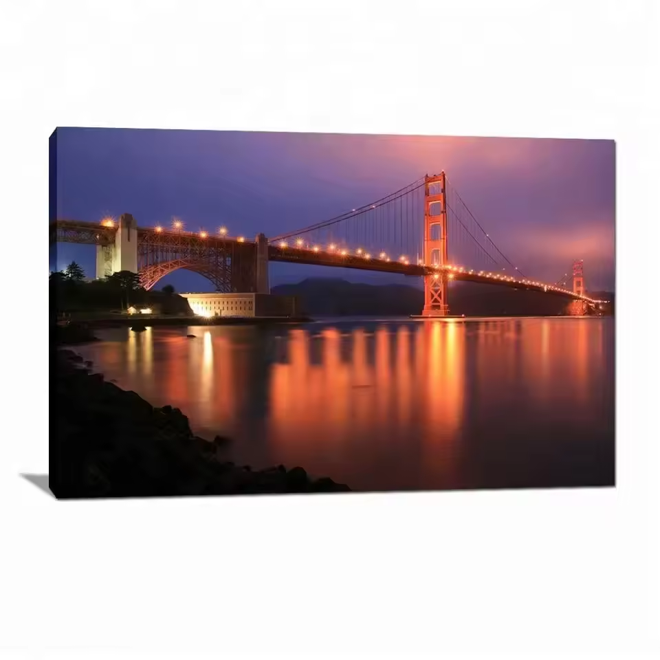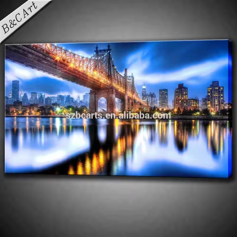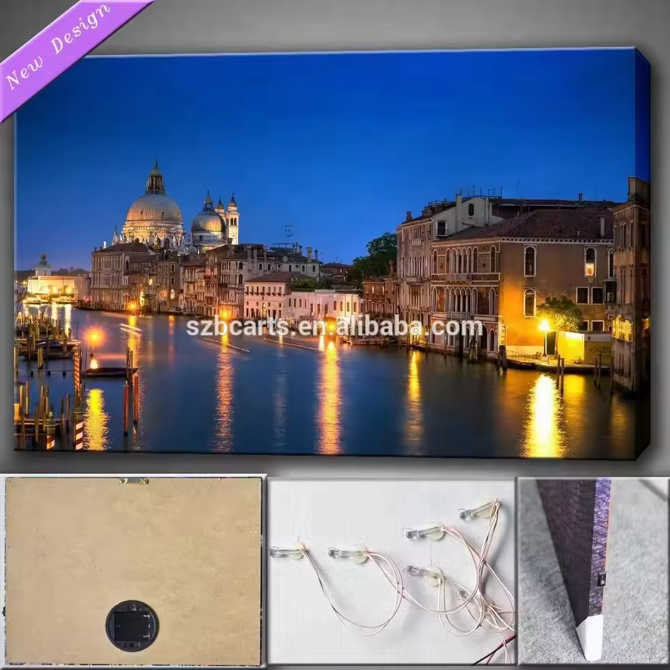 Stampa a LED su tela bella città di notte scenario di pittura digitale arte contemporanea su tela stampa con luci