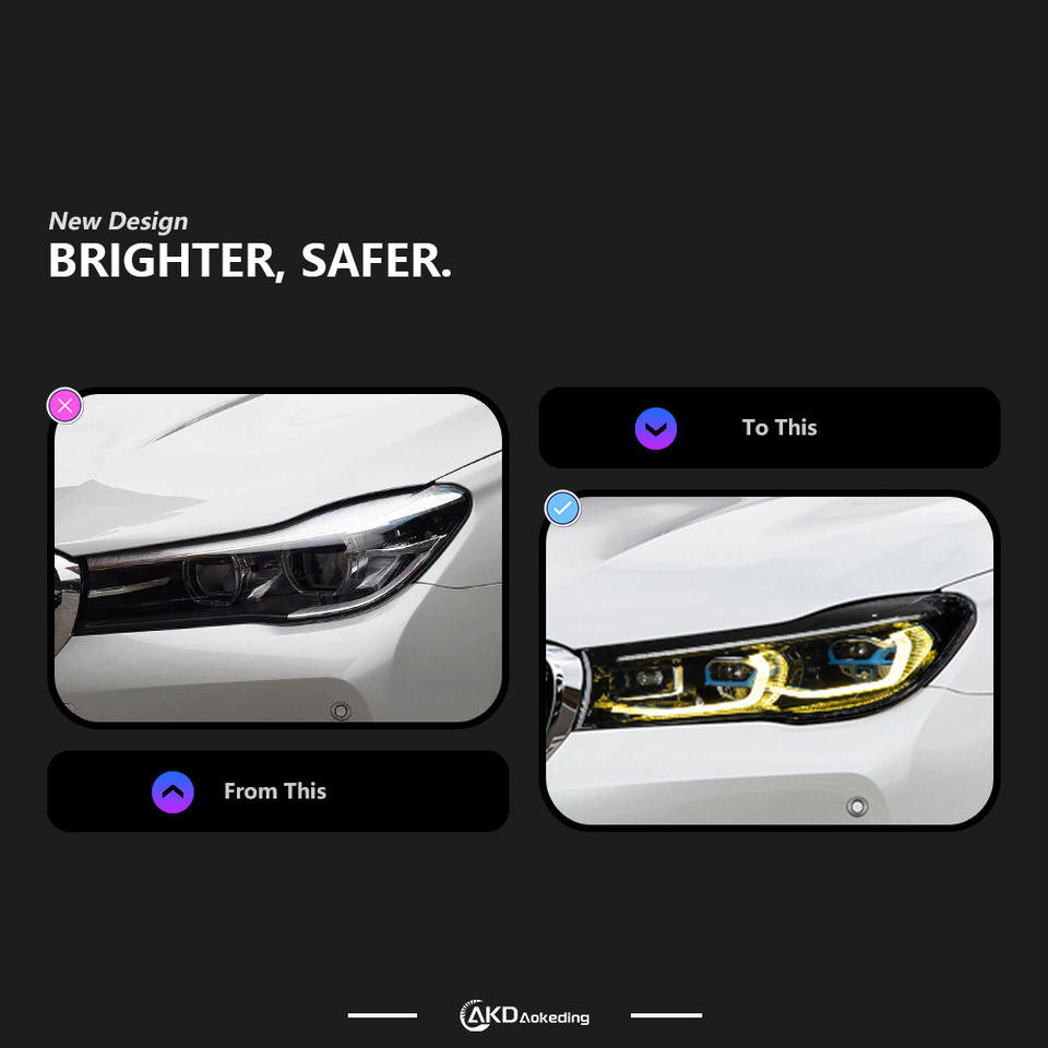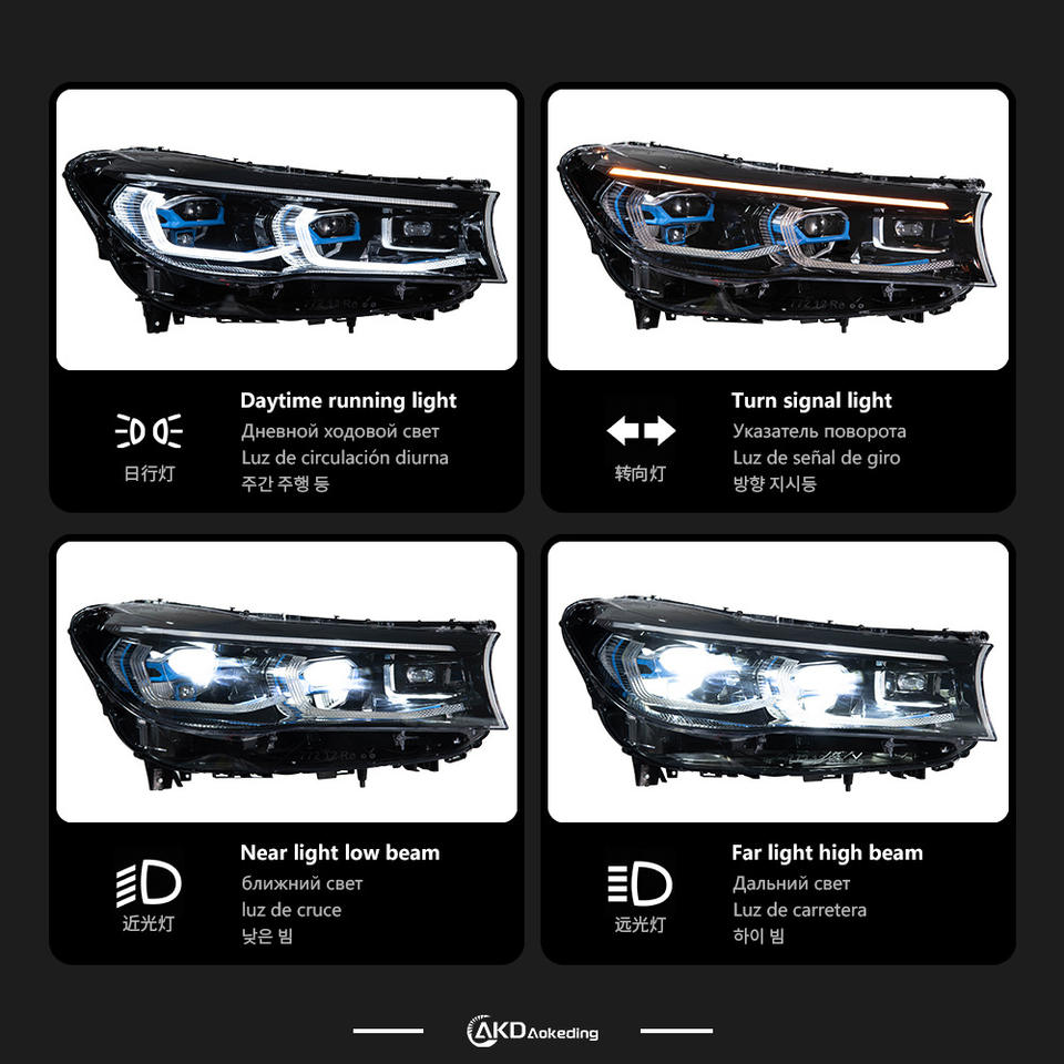 Gruppo Fari a LED Proiettori Compatibili con BMW Serie 7 G11 G12 2016-2018, Senza Modifiche al Paraurti, Occhio Dorato