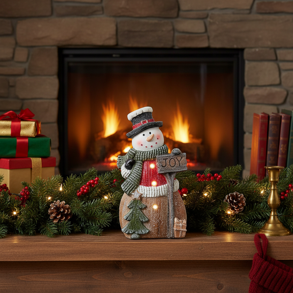 Statua di Pupazzo di Neve LED per Decorazione Interna, Figurina Natalizia e Giocattolo per Mensole, Librerie, Caminetti e Tavoli