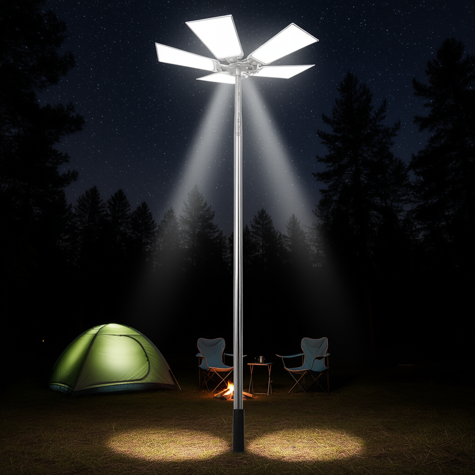 Lampada da Campeggio LED Telescopica 15000lm, Illuminazione Portatile per Pesca, Campeggio e Giardino